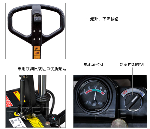 • 当货物较重且日常使用频繁时,此种升高型电动托盘搬运车便占据了一定优势。 同时作为手动托盘搬运车和升降平台,此种搬运车是一种理想的搬运工具• 当货叉降至420 毫米高度时,前轮支撑腿和可调稳定器会自动延伸贴紧地面确保最佳稳定性和最优制动性能• 摆动后轮结构,保证两侧后轮均能同时落地,接触性好,避免油缸承受侧向载荷• 采用欧洲原装进口优质泵站• 符合欧洲EN1757-4标准• 新型设计限位器• 人体工程学手柄设计让操作者更舒适省力。