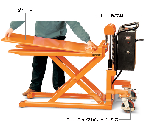 • 特殊功能-该升降机提升时仍可移动• 操作简便,后部张力最小化• 托盘搬运车和升降平台功能相结合• 承载和卸载操作的最理想工具• 重型连焊钢质框架和货叉可轻松操作重货• 操纵杆简便,加上后轮处2个固定制动器增加了安全性• 可靠的泵站确保更快更简便地提升货物• 额定载重为1000公斤型号车配有的转向手柄确保更舒适简易地转弯