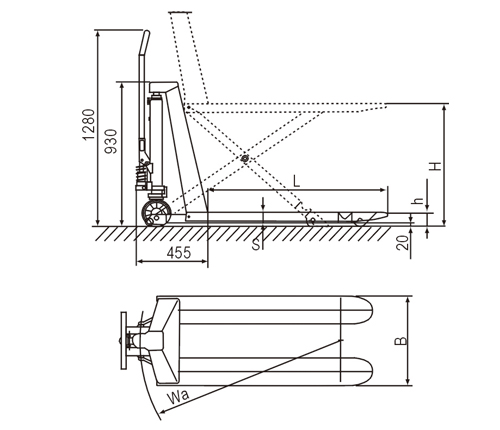 • 单程油缸,无额定载重的减少,无泄漏的危险,无双程油缸滑脱的危险