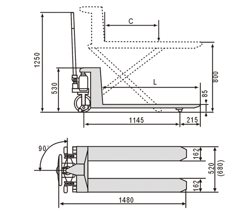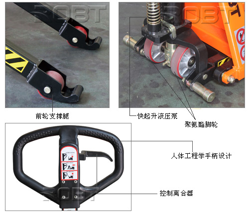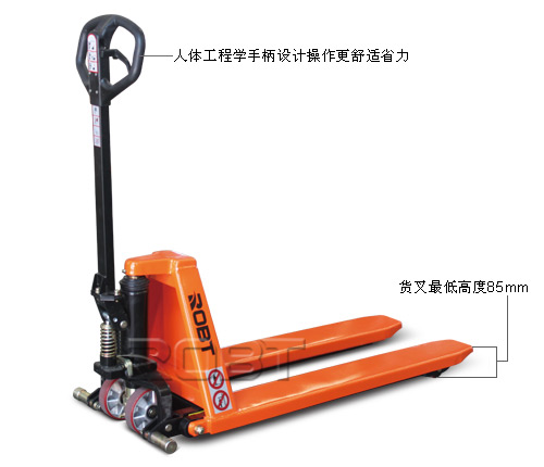 • 新型设计超大活塞可实现1000公斤的实际载重和1500公斤的额定载重• 特征:起泵非常简便加上体重轻盈,使该搬运车既适合当作手动托盘搬运车又可当作升降平台• 标准快速起升型:载重超过150公斤后自动转换至正常提升状态• 通过一个独特设计液压阀实现自动减速控制,无论承载或空载,减速率均保持平稳。自动减速控制装置可防止快速下降时货物受损• 当货叉降至420 毫米高度时,前轮支撑腿和可调稳定器会自动延伸贴紧地面确保最佳稳定性和最优制动性能• 重载设计:4毫米厚的钢板货叉框架和较大升降活塞确保此型搬运车达到额定载重量• 人体工程学手柄设计让操作者更舒适省力• 符合欧洲EN1757-4标准