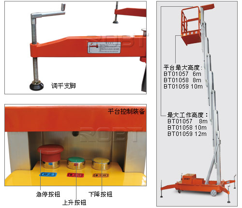 • ROBT为保障您的作业安全,高空平台类产品,每台免费附送一套安全帽和安全带。