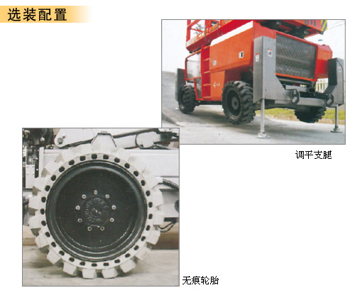 选装配置 • 自动液压调平支腿 • 超重传感器 • 液压发电机 • 液压电焊机• 液压空气压缩机 • 液压高压水泵 • 连接到平台的AC电源• 平台工作灯 • 无痕轮胎