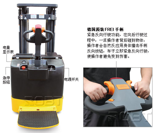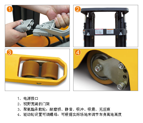 • 原装进口克虏伯槽钢 • 良好视野的挡货架 • 货叉快速起升/下降 • 双油缸、双链条设计 • 进口液压油管、关节处使用成型钢管 • 进口电控、 蓄电池侧位装卸 • 再生制动功能 • 德国原装Frei手柄 • 可接受非标尺寸定制 (再生制动亦称反馈制动,是一种使用在汽车或铁路列车上的制动技术。在制动时把车辆的动能转化及储存起来;而不是变成无用的热能)