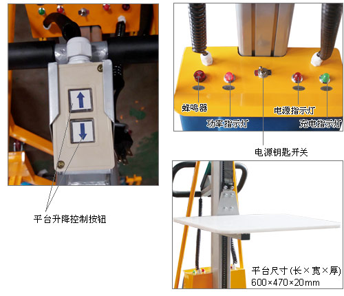 • 适合用于狭窄通道和边缘区域。包括医药、娱乐、包装流水线、食品加工、仓库、办公室、厨房、实验室、零售业出入通道等等……• 设计新颖轻巧,操作灵活;• 多种灵敏性高、轻盈设计的升降机适用于任何提升作业,且将物料从地面起升至过肩高度时无需用力;• 带电量显示表及低电压报警灯;• 自动电子超载保护系统确保了安全性无须保养,密封蓄电池,自动充电器;• 带有安全装置,防止非正常快速下降;• 自动制动系统防止无控制下降;• 符合欧洲 EN1757标准。