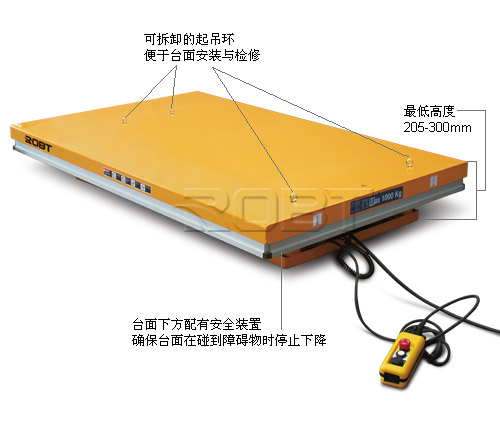 • 台面下方配有安全装置,确保台面在碰到障碍时停止下降;