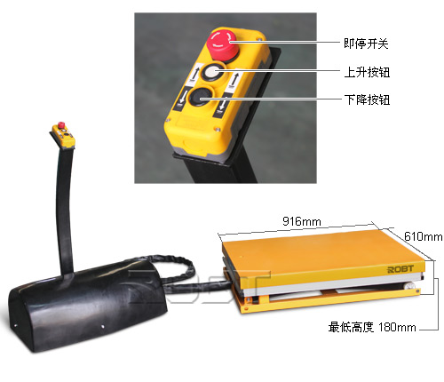 • 微型台面,适用于特殊尺寸货物 • 符合EN1570标准和ANSI/ASME安全标准 • 欧洲原装进口优质电源组件 • 带上下按钮和即停按钮的24V低压控制盒 • 防过载安全阀及压力补偿型流量阀,精确控制下降速度 • 台面下方配有安全装置,确保台面在碰到障碍物时停止下降 • 带回流装置及止回阀的重型油缸,阻止油管爆裂时台面下降 • 剪叉支架间的安全间隙,可避免夹伤 • 连动部位配有自润滑导向环,减少部件之间的磨损 • 可拆卸的起吊环,便于台面安装与检修