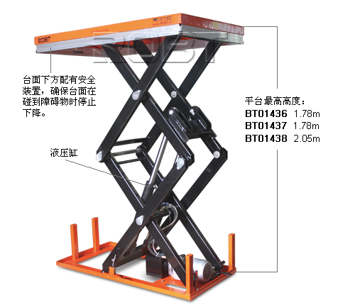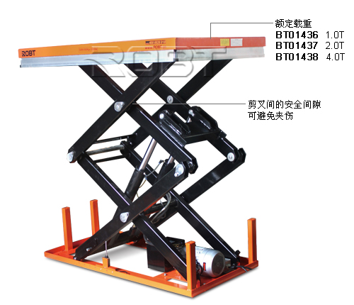 • 重载型设计,最大载重4000kg • 双剪叉设计,起升高度高,最高可达2050mm
