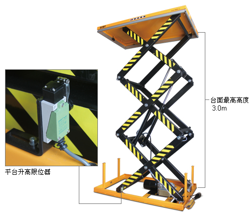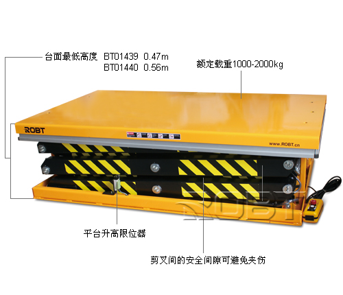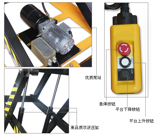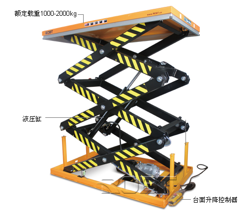 • 重型设计;• 广泛应用于制造、维修等行业;• 符合EN1570和ANSI/ASME安全标准;• 高质量的电源装置由欧洲生产;• 台面下方配有安全档条装置,当台面下降遇到障碍物停止下降,确保安全;• 内部电源组配置有安全阀及补偿流量开关,安全阀可以防止超负荷运作,补偿流量开关可以控制低速,液压系统带防爆阀压当油管爆裂时,可防止平台急速下降;• 采用防夹剪叉设计,防止夹伤;• 枢轴点的轴衬全部自动润滑设计;• 可拆卸的吊环可方便操作以及起升台的安装。