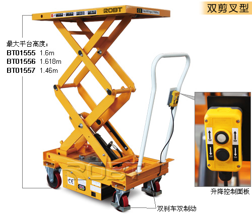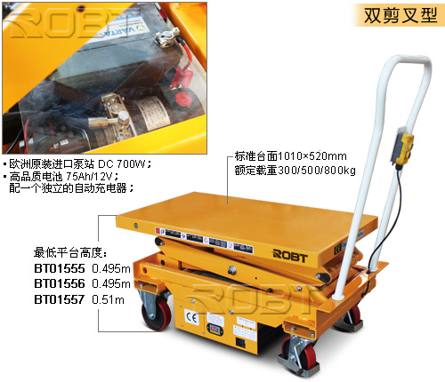 • 轻松升降货物,上升和下降过程均匀、平稳;• 轻盈但坚固结构;• 驱动轮的两个刹车装置增强了安全性;• 采用防夹剪叉设计;• 符合欧洲EN1570:1999安全标准;• 欧洲原装进口泵站 DC 700W;• 高品质电池 75Ah/12V;配一个独立的自动充电器;注意!• 为保护电源设备,连续工作时间不得超过30秒(大约2个作业循环),最好等3分钟后再开始工作。