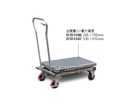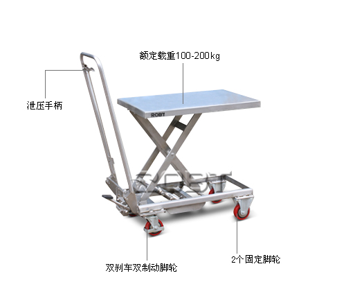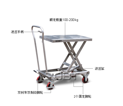 • 除轮子,密封件等橡胶塑件以外的所有零部件都采用不锈钢材料制造• 轮子有保护罩结构,防止压伤脚背• 采用防夹剪叉设计,防止夹伤,带有过载保护功能,更可靠,更安全• 适用于冷库及洁净度要求高的场合,如肉类加工、奶制品加工等食品加工行业