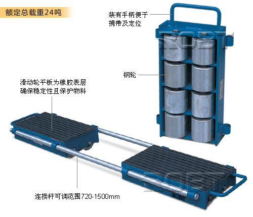 • 实际上可调重型滑动轮包括2个滑动轮,他们通过2根钢条连接在一起组成了一套滑动轮• 可调范围为:500毫米-1400毫米和720毫米-1500毫米• 用于安全简便的搬运重物• 操作简便,所有的滑动轮都配置滚珠座圈• 不会损伤地板