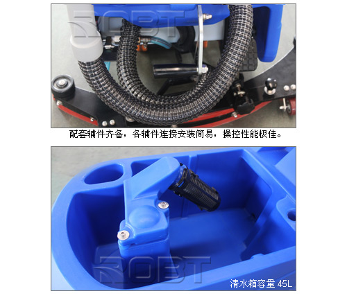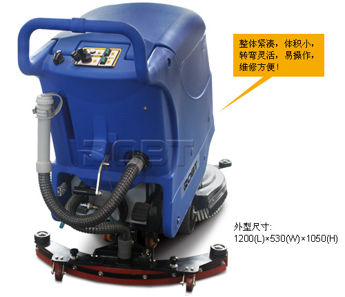 • 电动作业,无噪声、无废气排放 • 适合大型工厂、购物商场、客运站场的地面清洁需求• 配套辅件齐备,各辅件连接安装简易,操控性能极佳• 整体紧凑,体积小,转弯灵活,易操作,维修方便 • 集洗、吸于一体,无需再次拖干地面 • 机械化作业效率高、效果好,机器所到之处清洗一干二净• 清洁效果好,洗刷吸干过的地面,无残留水迹。脏水、泥土、砂粒统统吸入污水箱,特别对油污地面,机器清洗后,洁净如新,是人工所不及