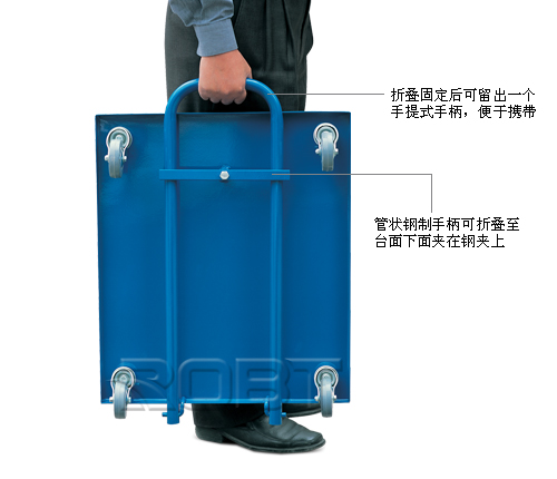 • 便于操作、携带、和贮藏• 4个直径为75毫米的无印痕万向轮• 管状钢制手柄可折叠至台面下面夹在钢夹上• 折叠固定后可留出一个手提式手柄• 经济实用,性价比高