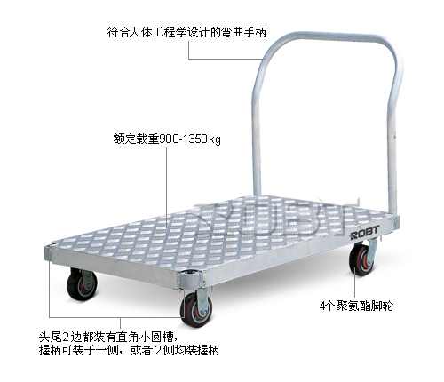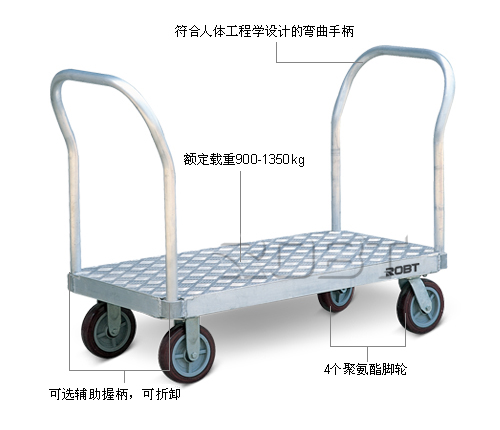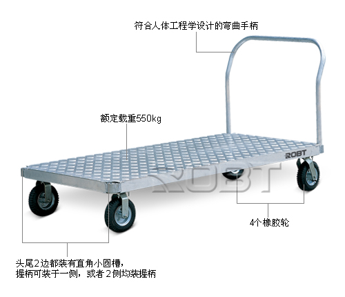 • 专用于办公室、贮藏间、仓库、码头区域或实验室等场所• 非常适用于炎热、潮湿的场所• 轻盈、防腐,铝制平板推车拥有美观、干净的外形,主要用于重型搬运• 组合箱框架由高强度全焊铝制成,带重型设计的平板• 头尾2边都装有直角小圆槽,握柄可装于一侧,或者2侧均装握柄• 装有2个转向轮和2个固定轮确保移动平滑• 可选辅助握柄