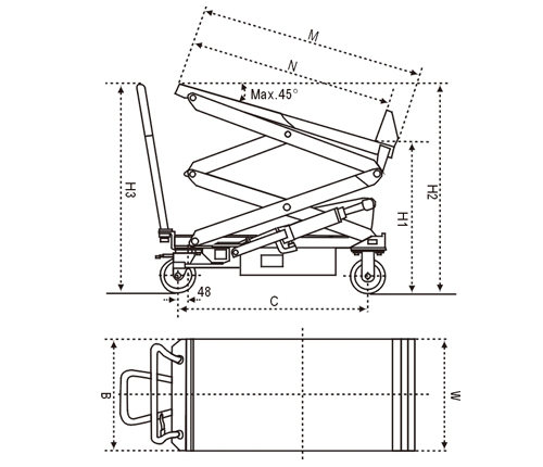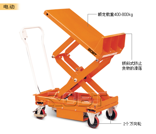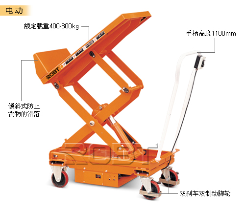 • 轻松升降重物• 可倾斜台面,可使操作者轻松快捷地装载、卸载搬运箱内的零件,无需起升、弯曲、伸缩或伸手够• 当处于升降或倾斜位置时,平台车会将搬运箱或集装箱保持在一个舒适的作业高度和角度以便操作者易于够到货物,甚至在集装箱底部就可搬运货物• 符合欧洲所有安全标准,包括EN1570∶1999安全标准• 驱动轮装有2个刹车装置提高了安全性• 防夹剪叉设计以及过载保护功能• 脚踏式作业台面通过一个脚踏的液压缸起升。台面升起时,自动倾斜至45°的角度。内装的挡板将集装箱固定在适当的位置• 电动式采用欧洲原装进口泵站 DC 700W,高品质电池 75Ah/12V;配一个独立自动充电器