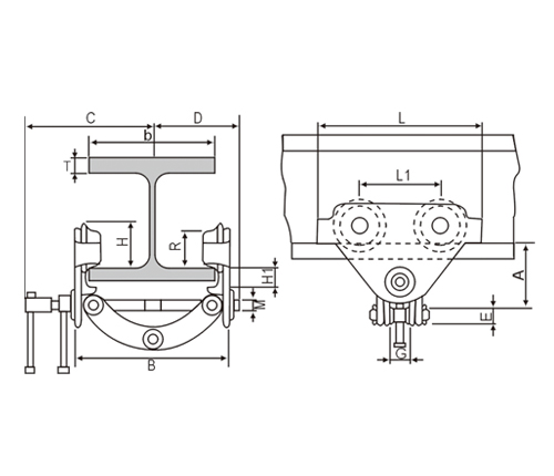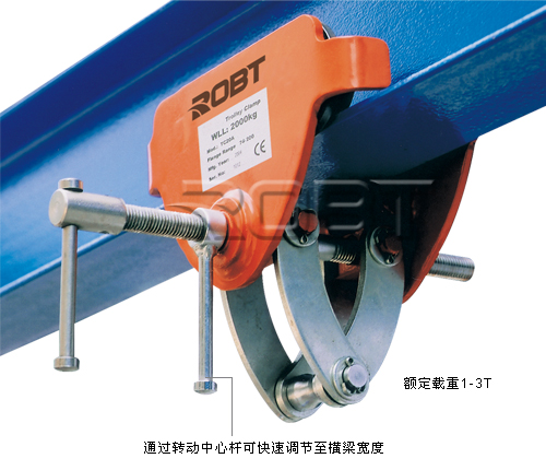 • 专业级技术水平• 通过螺纹可调节至不同的横梁宽度,调节简便• 带铸铁通用胎面轮可用于平面的或锥形的带翼横梁上• 通过转动中心杆可快速调节至横梁宽度• 可调节的胎面轮适用于大部分的I.S.W喝I型横梁或者涂层的轨道• 对于精确测定的作业非常有效• 配有3米长的落链• 耐磨损,高强度耐磨损钢梁