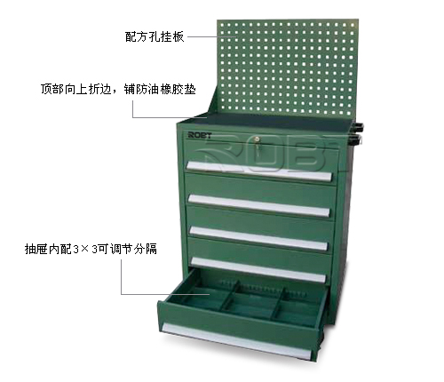 顶部向上折边,铺防油橡胶垫,上配方孔挂板;