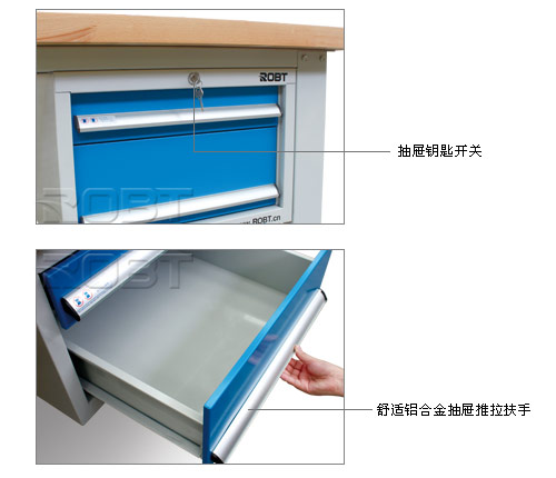 • 重型设计,高品质,多种选择,专业人士首选• 适用于工厂、车间以及生产安装线等地方• 复合桌面,表面为2mm高分子材料,耐碱、耐油、耐磨。桌面平整度过高,抗冲击性强。高强度橡胶包边,美观、实用,是应用广泛的桌面。• 榉木桌面,强度高,适合在上面进行机械加工,抗冲击性能好,可加装台钳• 抽屉可打开85%,最大承重80kg• 预留电源线入孔• 安装简便,以未组装形式发送