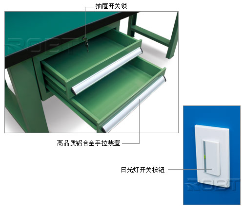 • 制造业必备,专业作业首选取• 分类存放零部件,一目了然的标签提高您的工作效率。隔间大小可以横向纵向任意调节,最小调节距离20mm• 选配时请注意适合的抽屉的高度和宽度。• 复合桌面,表面为2mm高分子材料,耐碱、耐油、耐磨。桌面平整度过高,抗冲击性强。高强度橡胶包边,美观、实用,是应用广泛的桌面• 榉木桌面,强度高,适合在上面进行机械加工,抗冲击性能好,可加装台钳等附件• 上配方孔挂板,可安装节能灯管,预留电源线入孔• 安装简便,以未组装形式发送