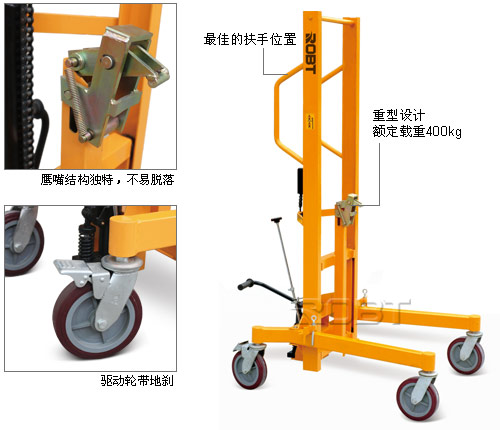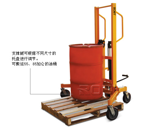 • 重型设计,支腿可调;• 符合人体工程学设计的油桶搬运车可起升、搬运、放置材质为聚丙烯、钢、纤维的油桶;• 一个弹簧夹确保夹住任何有框的油桶;• 装有转向驱动轮,便于定位;另外,装有带滚柱轴承的载轮以达到最高稳定性;• 支撑腿可根据不同尺寸的托盘进行调节。可搬运55、85加仑的油桶。