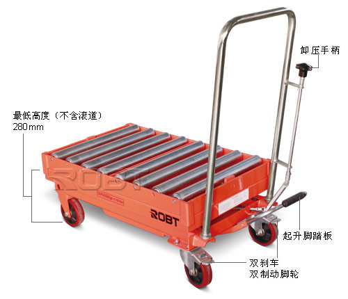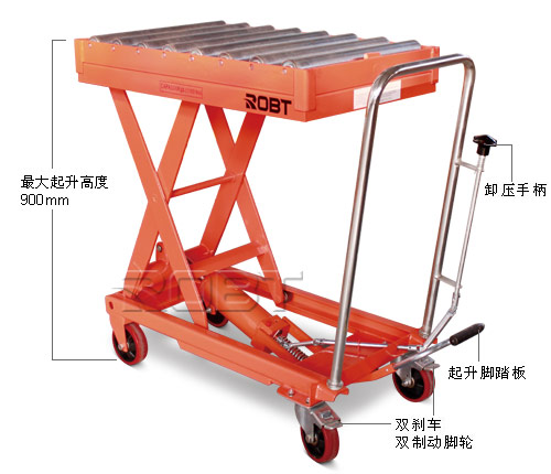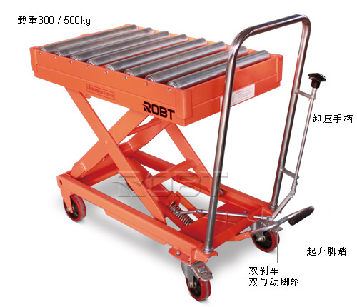 • 通过脚踏式液压泵工作,方便地使平台起升至所需高度;