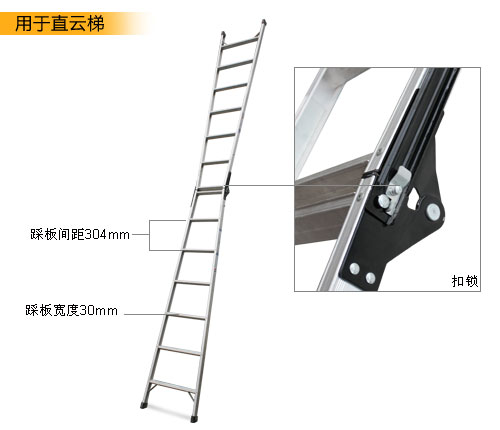 • 高强度的铝合金型材,一梯二用,兼具马梯和直梯两用使用形式 • 附有特殊锁扣装置,安全便携 • 踏板型材为管状,稳定防滑 • 适合装潢、建筑、工厂、商场、超市、宾馆、家庭等室内作业 • 注:打成直梯时,请参照使用说明,严禁反用