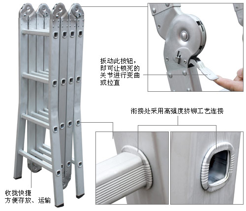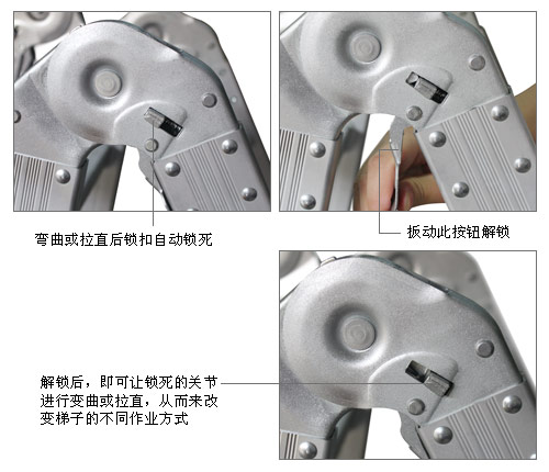 • 专利的自动上锁关节,多功能性,并附有强固的防滑梯脚设计