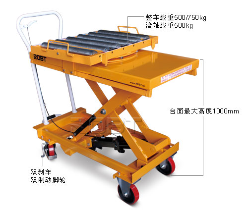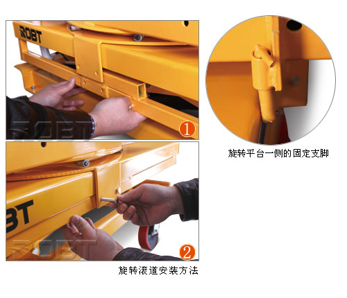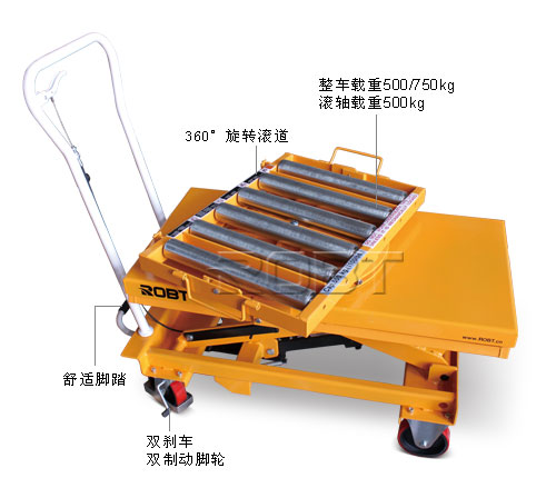 • 通过脚踏式液压泵工作,方便地使平台起升至所需高度;
