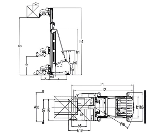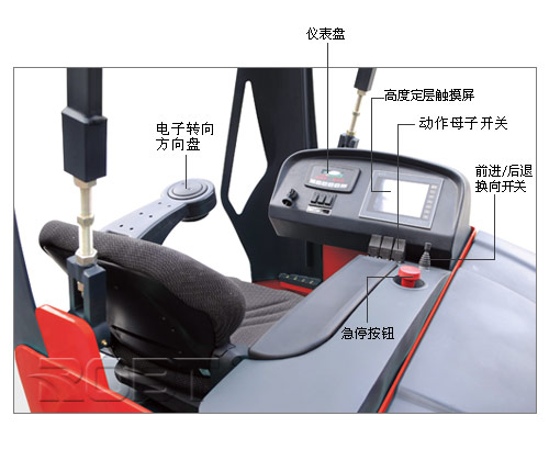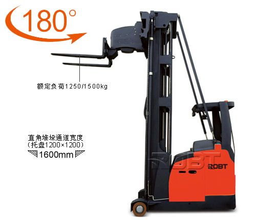 ·采用ZAPI 新型全交流控制器、德国进口ZF变速箱,高效率,低噪音。是一款多功能、高适应性车型,完全满足窄巷道,宽巷道及平台的使用要求。 ·货叉的上升、下降、左移、右移、左旋、右旋等功能都在手动模式下完成。 ·在自动模式下,通过人机界面能实现货物存取准备、高度定层等操作,在满足纵向定位的条件下,还可实现自动存取货。 ·人机界面在本机上不仅作为一种输入设备,而且还能实时显示转向轮、货叉的方位及货叉的横向位置及高度、货物的重量等数据。 ·还配备了独立的视频显示系统,无论货叉处于何种高度,操作人员都能够近距离的观察货物的种类、形状及位置。
