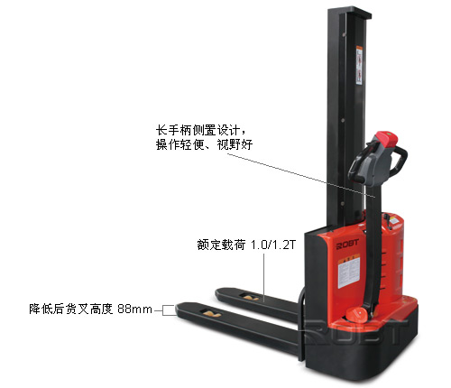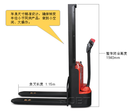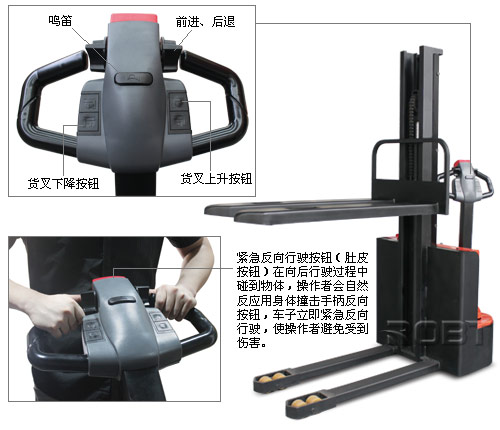·业界最小作空间的电动堆高车; ·低耗、高可靠的创新设计; ·长手柄、偏置操作,方便安全。