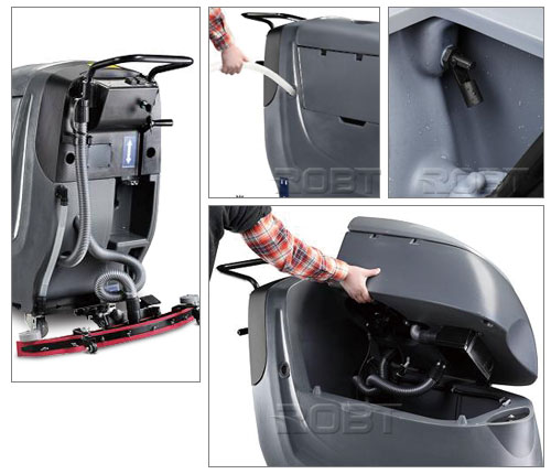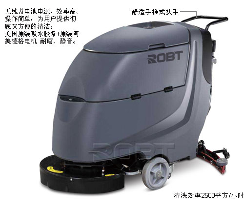 ·罗倍拓自动洗地/干地机是用来清洁大面积地面的理想工具,机器容易操作并非常有效。 ·适用于各行各业,如超市、工厂、火车站、地铁站、学校、仓库的地面等。 ·无线蓄电池电源,效率高、操作简单,为用户提供彻底又方便的清洁。 ·24V蓄电池低能耗设计 提供较长的持续工作时间; ·静音吸水电机设计 工作噪音大大降低; ·轻巧的加压设计装置 快速清除局部污垢; ·侧翻实水箱设计,可更大面积清洗污水箱; ·电源管理设计 有效延长蓄电池的使用寿命; ·污水箱水位感应器 能自动切断马达工作,更有效保护吸水马达; ·电子阀节水系统 省水 、节能、 高效 一升水可洗60平方; ·美国原装吸水胶条+原装阿美德格电机 耐磨、静音;