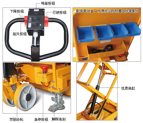 | ·优良的设计,电动起升,电动行走; ·负载时轻松移动; ·在不同的工作环境中保持理想的起重操作; ·强劲的电池和强大的液压泵,较低的触摸按钮,非常稳定; ·通过牵引处理,控制刹车; ·采用防夹剪叉设计,防止夹伤; ·采用优质泵站和驱动轮使货物起升平稳有力; ·符合EN1570标准。
