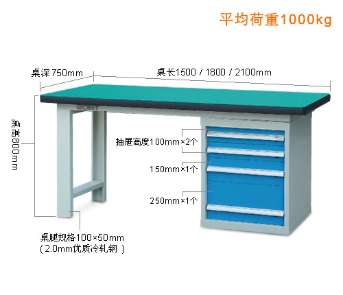 • 特别设计的可拆卸组合式框架结构; • 底部可选配各式工具柜,以实现工作和存储双重功能; • 复合桌面:表面2mm厚为高分子材料,使桌面耐酸碱、耐磨、耐油; 采用高压纤维板,使桌面更具有抗冲击力; 特别的圆弧桌角,不易撞击受损。 • 榉木桌面:用榉木指接而成; 工作桌面强度高,适合在上面进行机械加工; 采用进口榉木,抗冲击性好。 • 采用2.0mm优质冷轧钢折制 • 安装简便,以未组装形式发送