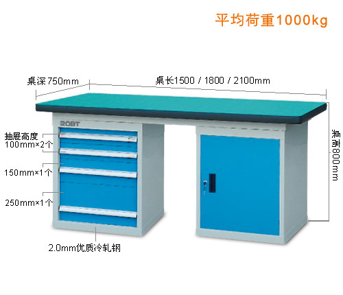 | • 特别设计的可拆卸组合式框架结构; • 底部可选配各式工具柜,以实现工作和存储双重功能; • 复合桌面:表面2mm厚为高分子材料,使桌面耐酸碱、耐磨、耐油; 采用高压纤维板,使桌面更具有抗冲击力; 特别的圆弧桌角,不易撞击受损。 • 榉木桌面:用榉木指接而成; 工作桌面强度高,适合在上面进行机械加工; 采用进口榉木,抗冲击性好。 • 采用2.0mm优质冷轧钢折制。 • 安装简便,以未组装形式发送