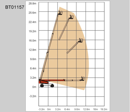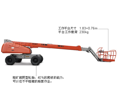 • 四轮驱动,四轮转向功能使其具备强大灵活的机动性能; • 全自动伸展轮轴; • 铝合金操作盒及控制面板更加坚固,也提高了防水性能; • 全封闭的线索设计,避免意外发生,导致昂贵线索替换; • 40%的爬坡的能力,可以在不平粗糙的路面作业; • 水平延升22.20m; • 更小的转弯半径; • 转台360°连续回转; • 平台±90°摆动; • 小臂+70°/-60°变幅; • 可旋转式发动机安装设计方便维护; • 故障代码自动显示方便检修。