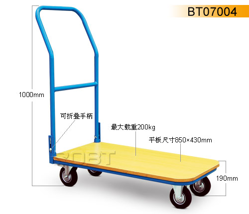 | ·轮架由涂层钢板制成; ·扁平包装,推柄可用螺栓拴住; ·BT07002、BT07003装有2个带制动转向脚轮,2个固定轮,橡胶轮胎,直径为200毫米,滚筒轴承。 ·BT07004可折叠手柄,装有2个带制动转向脚轮,2个固定轮,橡胶轮胎,直径为125毫米,滚筒轴承。 ·安装简便,以未组装形式发送