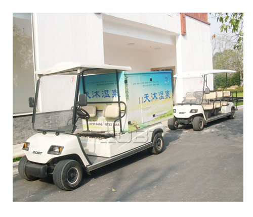 无级变速后桥(同美国CLIUB CAR球车后桥)、后桥速比12.31:1半独立悬挂、弹簧、筒式液压减震。