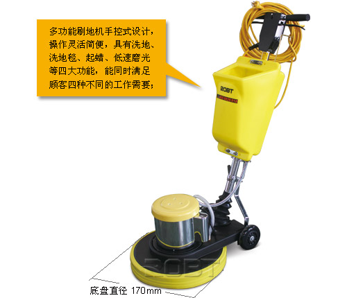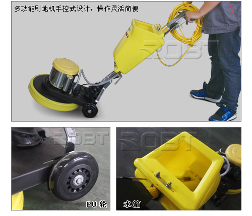 | ·多功能刷地机手控式设计,操作灵活简便,具有洗地、洗地毯、起蜡、低速磨光等四大功能,能同时满足顾客四种不同的工作需要; ·刷机设计精密,齿轮传动,双电容配置,安全可靠,运行有力。 ·此机可配置电子打泡箱使用,避免清洗后的地毯因不能及时干透而受损易脏等问题,并提高工作效率及工作质量。