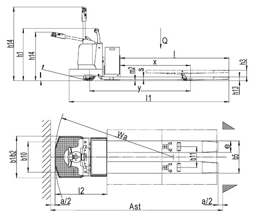 | 通道宽度,带1000×1200mm托盘(Ast) |