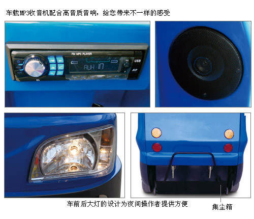| ·本系列电动驾驶式扫地车是一款设计紧凑、操控灵活的清扫设备,适用于:厂区重尘或较大区域的清扫工作(如马路、广场、矿山、机场旅游景点等)。 ·电动作业,无噪音、无废气排放。 ·拥有手动倾倒垃圾、垃圾自卸以及驾驶室垃圾自卸等多种型号可供选择。 ·后抛式垃圾收集系统,可快捷有效的清除较大垃圾和杂物。 ·全钢支架地盘,高分子纤维外壳坚固美观,且易于清理。 ·独特的喷淋系统设计具有喷淋、降尘功能,保证了机器在作业过程中无二次扬尘,为操作者提供了良好的工作环境。 ·MP3收音播放机配合高音质音响,为操作者提供愉悦的工作环境。 ·档位器和油门设计均与汽车原理相同,操作起来如驾车一般舒适。