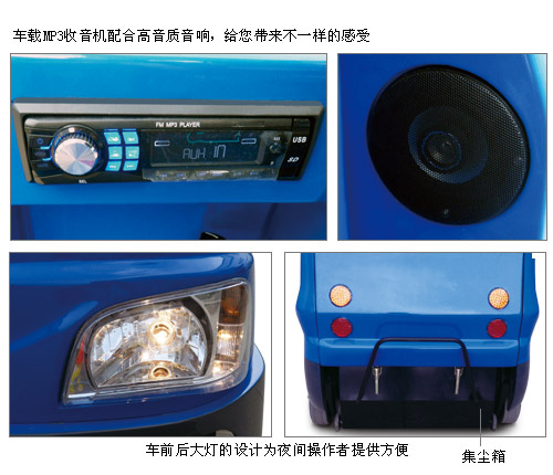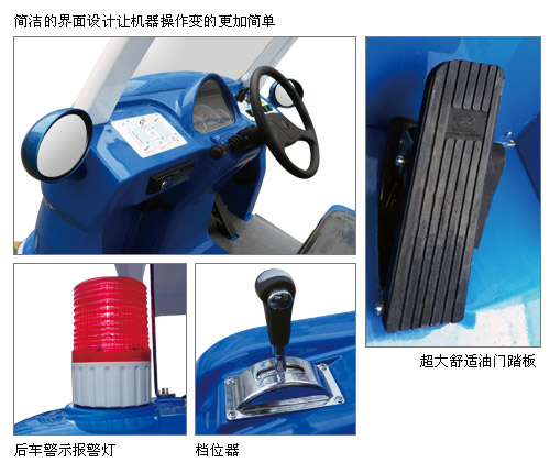 | ·本系列电动驾驶式扫地车是一款设计紧凑、操控灵活的清扫设备,适用于:厂区重尘或较大区域的清扫工作(如马路、广场、矿山、机场旅游景点等)。 ·电动作业,无噪音、无废气排放。 ·拥有手动倾倒垃圾、垃圾自卸以及驾驶室垃圾自卸等多种型号可供选择。 ·后置式垃圾箱由液压系统控制抬升,最大抬升高度112cm,最大承载重量200kg ·后抛式垃圾收集系统,可快捷有效的清除较大垃圾和杂物。 ·全钢支架地盘,高分子纤维外壳坚固美观,且易于清理。 ·独特的喷淋系统设计具有喷淋、降尘功能,保证了机器在作业过程中无二次扬尘,为操作者提供了良好的工作环境。 ·MP3收音播放机配合高音质音响,为操作者提供愉悦的工作环境。 ·档位器和油门设计均与汽车原理相同,操作起来如驾车一般舒适。