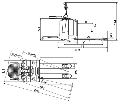 尺寸 全高(含操纵手柄)(h14) mm 1455
