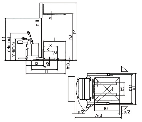 通道宽度,托盘800×1200(1200沿货叉放置)(Ast) mm 2484