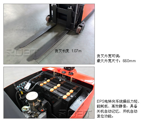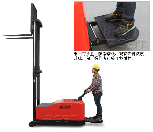 | • EPS电转向系统操纵力轻、能耗低、高效静音,具备关机自动记忆、开机自动复位功能; • 手柄与驱动系统完全脱离,可以有效防止地面不平、驱动系统颠簸而造成的手柄打手现象; • 驱动单元采用中间浮动机构,确保重心部分始终以最稳定的三角机构着地,提高了整车的稳定性,并有效减震,保护车内结构; • 增力油缸在车辆重载运行及起升货物时,为驱动单元增加附着力,有效防止驱动轮打滑; • 驱动系统具有再生制动功能,回收减速和制动过程中产生的能量,延长车辆工作时时间; • 标配起升电限位功能,减少能量浪费,延长液压系统及相关部件寿命; • 高耐磨聚氨酯轮胎,弹性好,承载力强; • 采用可折叠、防滑踏板,配有弹簧减震系统,保证操作者的操作舒适性; • 转向定位、起升限位采用无接触接近开关,质量可靠,寿命长; • 液压泵站配有双路电磁阀,操作下降按钮具备三种下降速度模式,确保货物平稳下降。