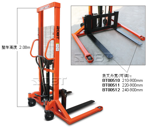 ·起升省力,经济实惠。·货叉采用自由移动式,能适用于各种托盘,或直接应用于各类需搬运物体。·可根据使用习惯选用手动或脚踩操作上升,升空下降。 ·加宽支撑腿设计,保证载重和堆高的稳定性。·转向轮配有脚刹系统,增加举高操作稳定性和安全性。注:盖板/锻打式货叉随机,如特殊要求请备注