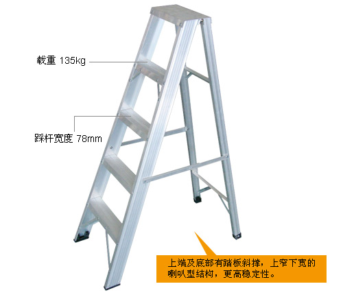 踩杆表面具有防滑条纹,上端及底部有踏板斜撑;