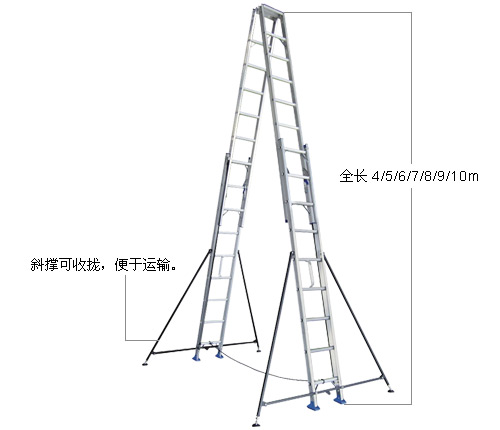 踩杆与直杆的链接采用特殊的铆接工艺由上下节梯组合,借助升降钩,滑轮组及拉绳使上下节梯升降自如。