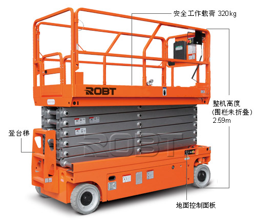 ·建议室内使用 ·ROBT为保障您的作业安全,高空平台类产品,每台免费附送一套安全帽和安全带。