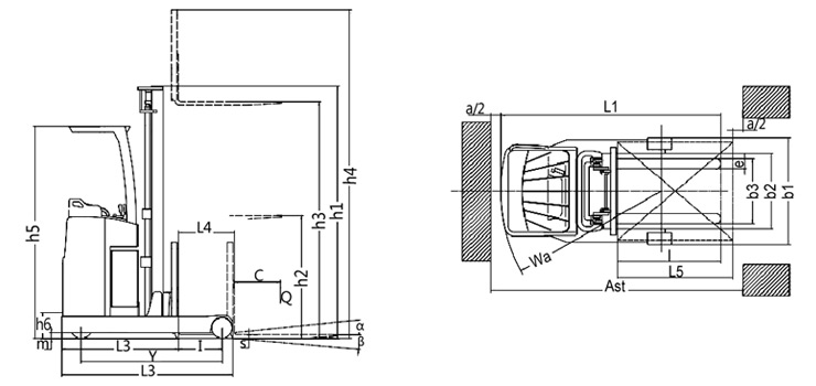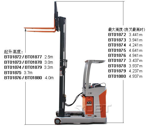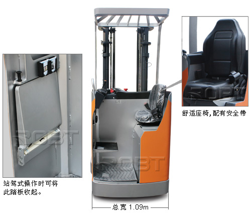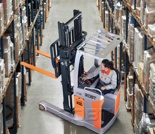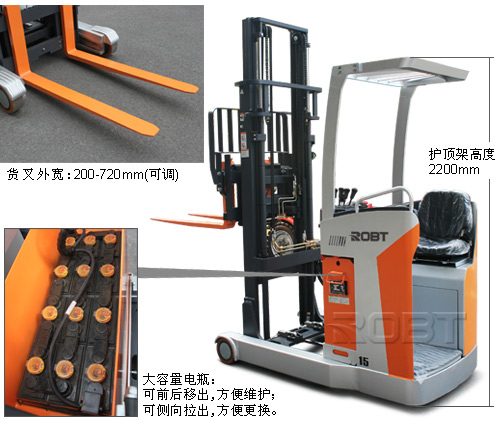 ·具有平衡重式叉车和电动堆垛机的共同特征,这两种性能的结合,使得这种叉车具有操作灵活性和高载荷的优点,同时体积和自重不会增加很多,可以节省空间,减少转弯半径,适合于通道较窄的室内仓库作业。 ·有利于设计仓库时采用较小的通道,可以提高仓库的利用效率。