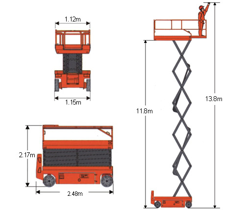 类型:电驱动马达 • 脚踏延升平台可以迅速的铺开至作业点; • 最高作业高度8-13.8m共有5种机型供您选择; • 可折叠式围栏缩小了整机体积; • 业内最小转弯半径(内轮0m)及紧凑的设计方便在狭小的空间作业; • 25%的爬坡能力,能够流畅爬上斜面; • 旋转式底盘方便维护; • 故障代码自动显示方便检修。